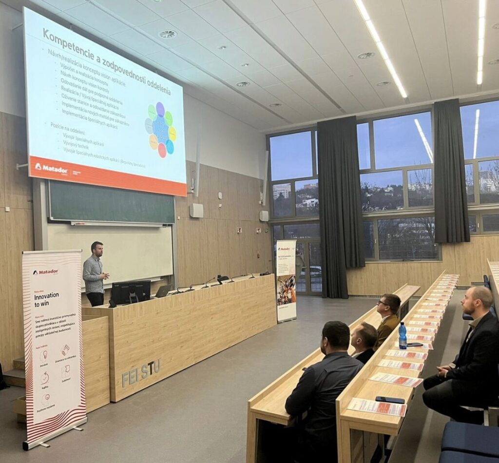 Based on several years of cooperation with the National Center of Robotics, on 6 December 2022 at the Faculty of Electrical Engineering and Informatics of the STU in Bratislava, together with our colleagues, we were able to present the field of industrial automation (Body in White and Factory Automation). The lecture was also led by Marek Buday, Head of the Software Development Department, while he and almost all our clever “developers” are graduates of this faculty. Thanks to funds from the Matador Foundation, we were also able to Prof. František Duchoň, PhD. transfer funds to support students.